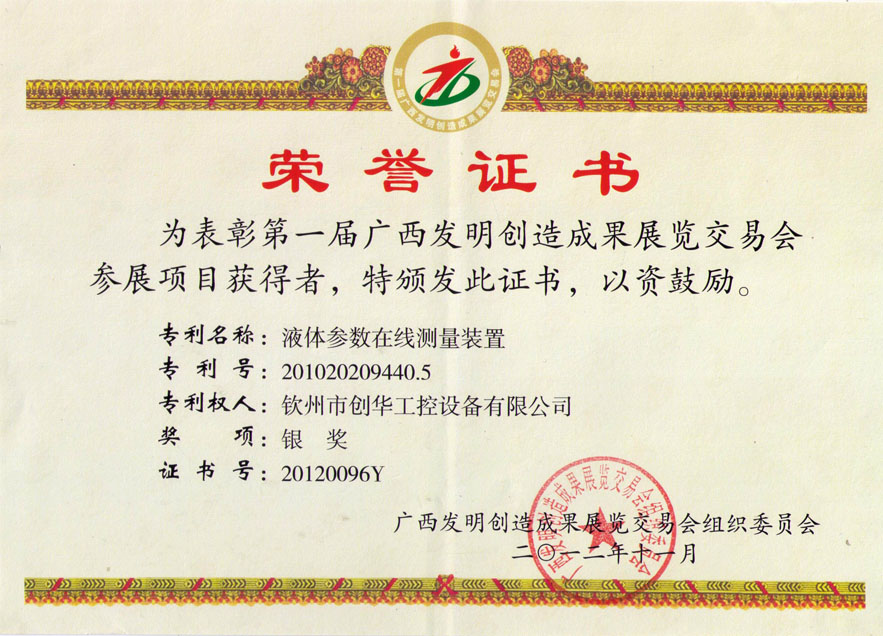 廣西發(fā)明創(chuàng)造成果展覽銀獎(jiǎng)
